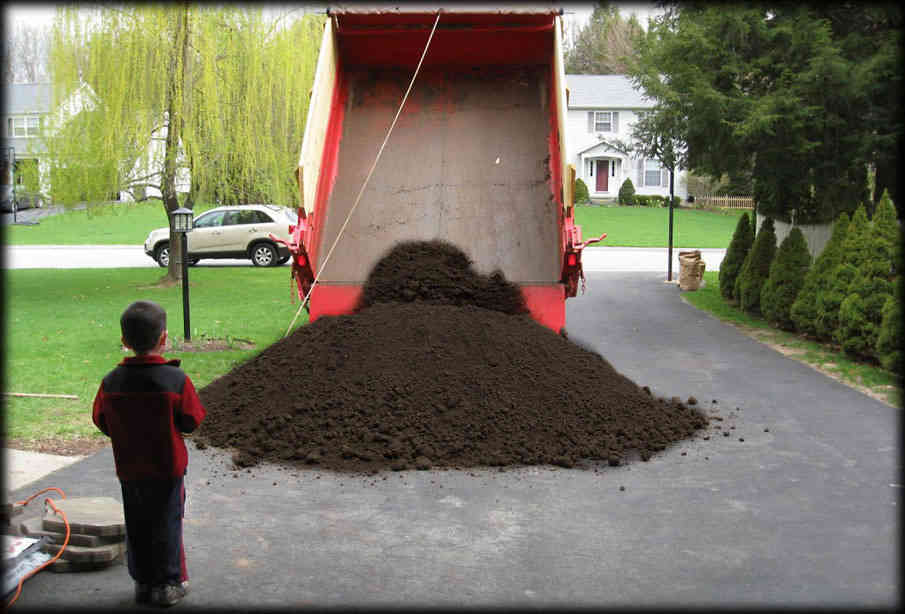 Our topsoil is an exclusive blend of Screened Top Soil with half Compost. This blended product has been developed to combine the fertility enhancing benefits of compost, with the workability of loam. The topsoil is dark and rich in color, and has been screened to a 1/2″ particle size or less. It is perfect for new lawn installations, turf top dressing, flower and vegetable gardens, tree and shrub planting and more.